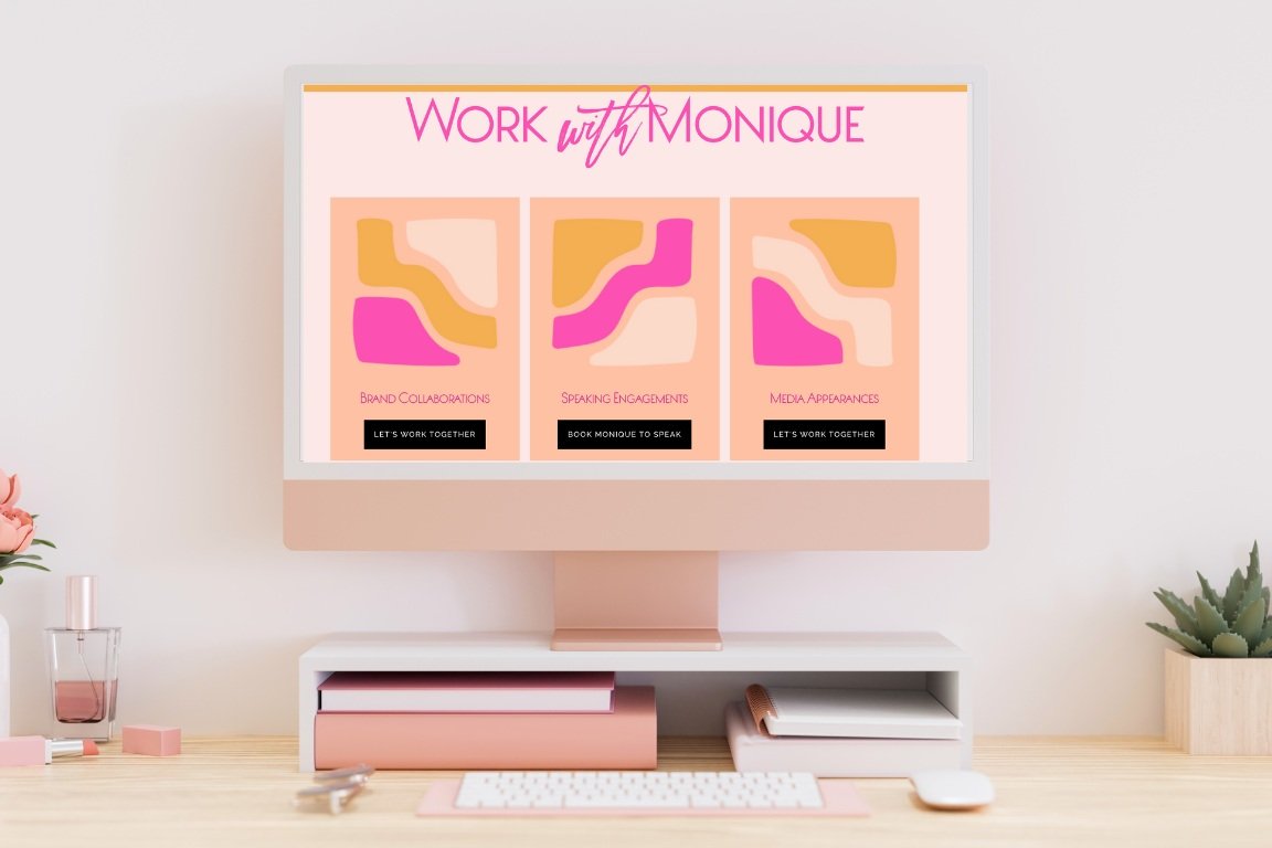 Our goal in designing the website was to create a custom design that used her new branding to reflect Monique’s personality, her joy, her wholeness as a human being, mother, wife, and her work as a speaker, educator and author.