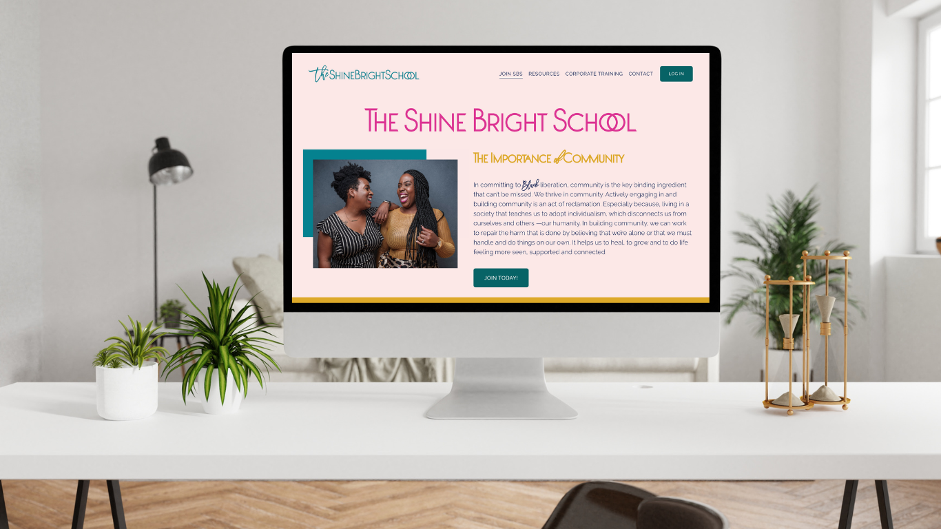 We worked with Monique Melton on her brand expansion and rebrand. Monique wanted to create a separate website and brand from her anti-racism & liberation work. Our goal was to keep the two connected, but distinct. For the Shine Bright School brand expansion, we created a new logo, secondary logo, favicon, design elements, branding, and custom website.